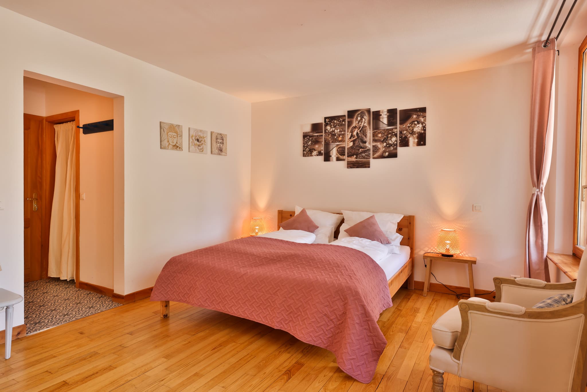 Nadège et Jérôme, les heureux propriétaires depuis 2022, vous accueillent dans leurs 5 chambres d’hôtes de charme. Le temps dans le jardin semble suspendu, offrant un panorama exceptionnel sur le massif du Taennchel.