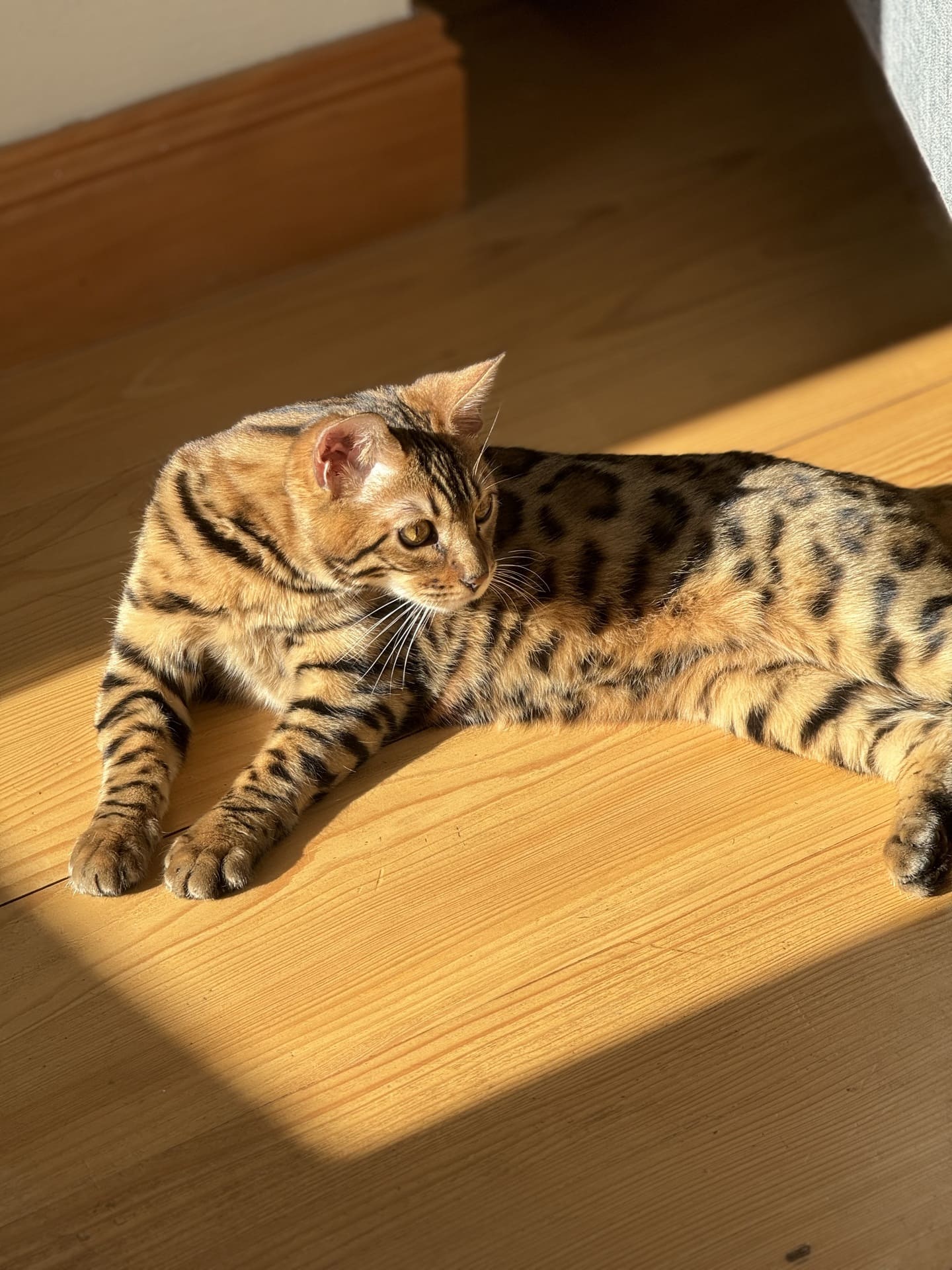Rencontrez notre élégant chat du Bengal, véritable trésor félin, avec son pelage exotique et son caractère enjoué. Il apporte une touche de magie et de raffinement à chaque recoin du Manoir.